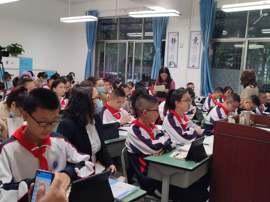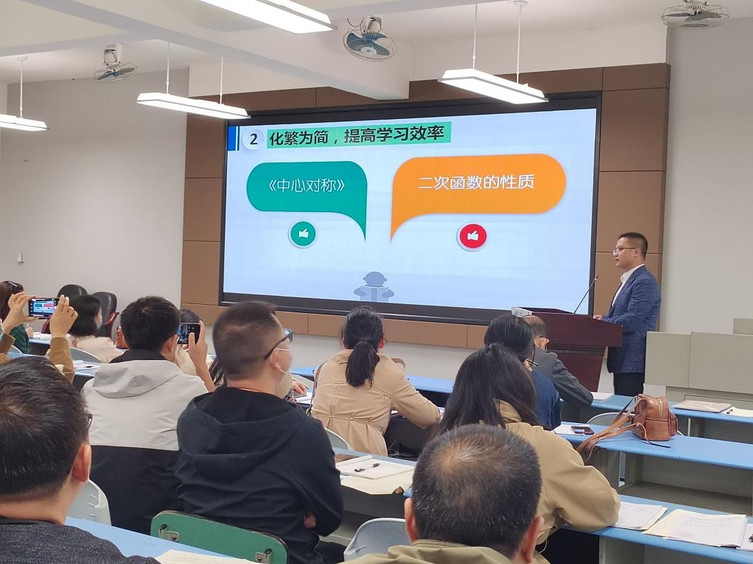 肩鸿任钜踏歌行,功不唐捐玉汝成。为发挥名师示范、引领、辐射作用,促进优秀教师快速成长,加强对青年教师引领示范作用,10月24日,大邑县赵敏名师工作室成员齐聚我校。活动就提升学生数学核心素养,践行“混合式学习”的模式,强化数学计算能力,抓实信息技术与数学教学深度融合,解读2022版课堂标准等内容进行研讨。工作室全体成员及全县七八年级数学老师参加本次研培活动。
