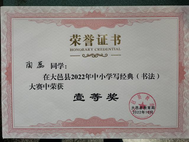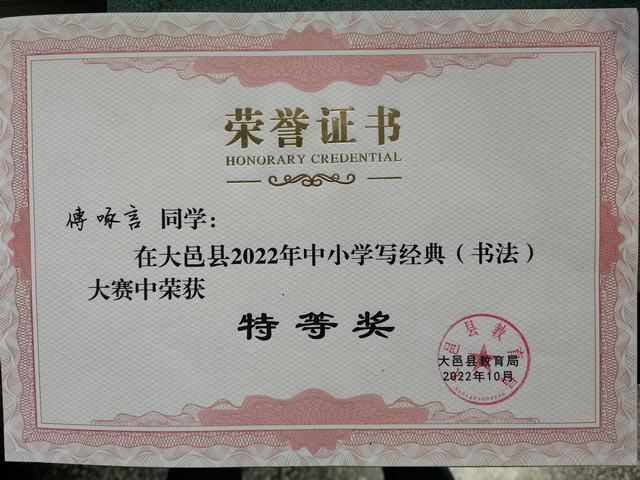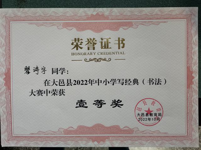 我校学生在2022年中小学写经典(书法)大赛中获奖