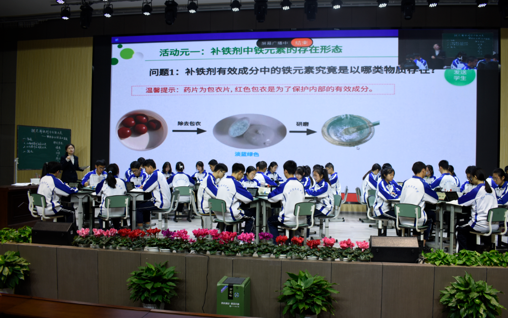我校教师鄢蒙执教了《认识亚铁盐和铁盐的性质》的化学展示课,以学科研究一个对象的基本路径为认识顺序设计问题串,以学科研究对象的认知路径为依据,引导学生发现问题、提出问题、分析问题和解决问题,促进学生学科思维的形成。课后,成都市教科院化学教研员邓玉华老师作精彩点评。