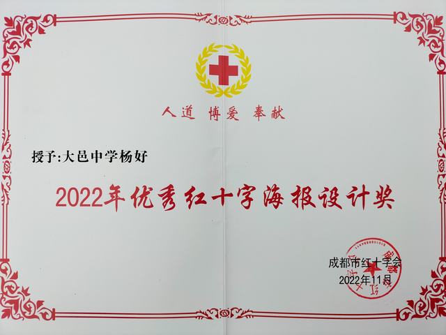 我校学生王馨怡、沈梦楷、李鑫杨、吴艾璘、杨好、陶雅婷、安彤荣获2022年优秀红十字海报设计奖