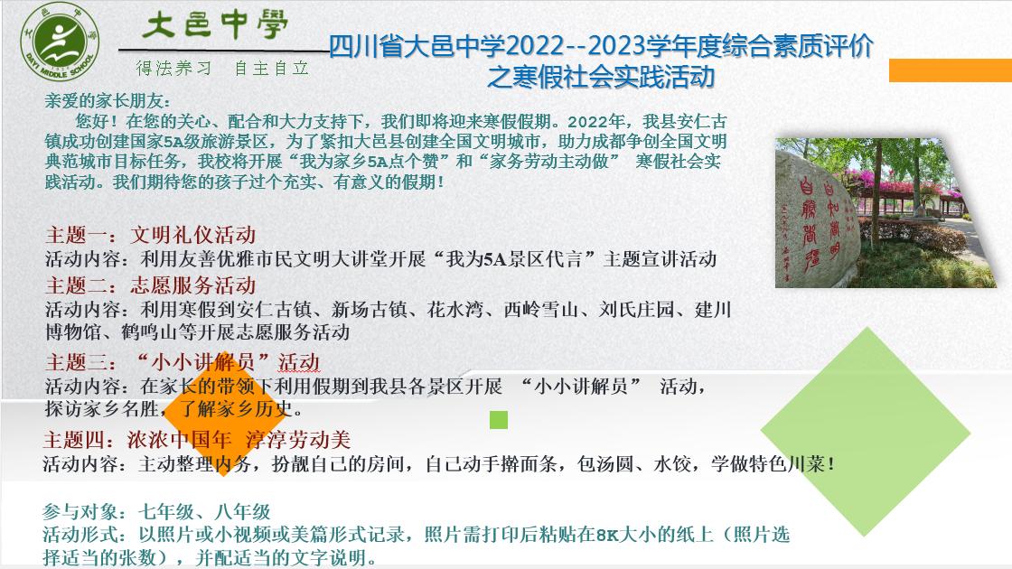五育巧融合 实践促成长 ——记大邑中学寒假社会实践活动