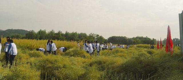 同学们个个充满新奇,干劲十足,戴好手套、拿起镰刀,排着长队有序走进油菜田里。老师一声令下,有的挥着镰刀割,有的负责堆放整理,大家干得热火朝天,经过一个多小时的辛勤劳作,割好的油菜被一摞摞地垒在田地间。