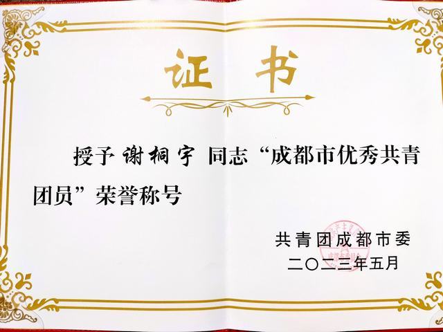我校学生谢桐宇、张婉钰荣获2023年成都市优秀共青团员称号