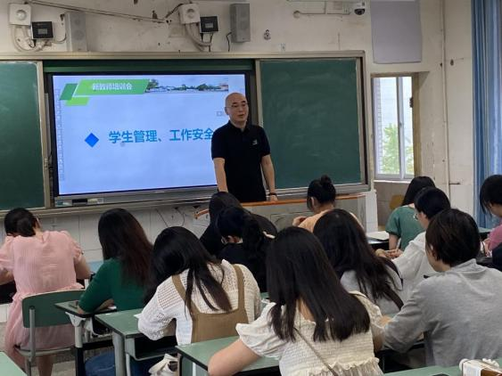 培训会上,学校对新教师的备课、上课、课后辅导、作业批改、教研等教学常规和安全管理等方面提出具体要求。强调新教师要做好规划,积极学习,主动工作,严守师德师风底线,做“四有”好教师。