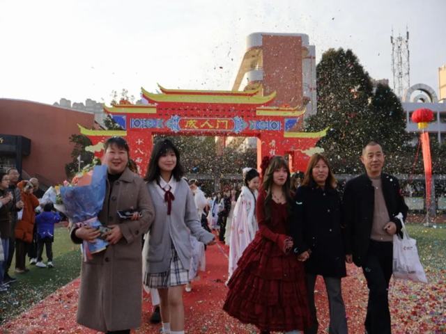 晨光熹微,红毯生辉。学子与父母执手并肩,在学校领导、教师、学子学妹们的见证下,合着青春与梦想的主旋律,从容地跨过“成人门”,迈入人生新阶段,走向人生新起点。