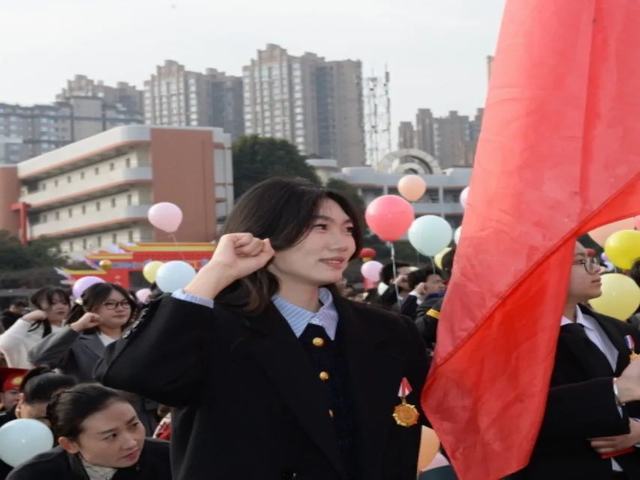 国歌铿锵,红旗猎猎。全体师生肃立凝望,目光中跃动着赤子丹心。大邑中学党委书记聂长志对同学们寄予深切希望:
