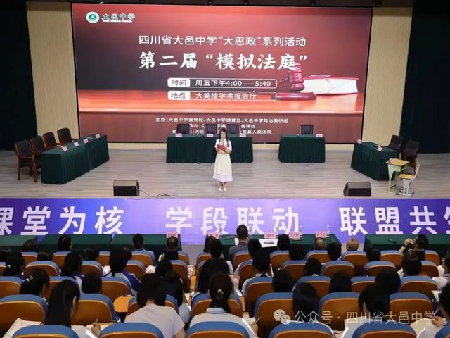 为深入贯彻成都市教育局等四部门《关于开展2025年全市青少年法治宣传教育系列活动的通知》(成教函〔2025〕47号),推进青少年法治宣传教育,提高青少年的法治意识与道德素养,厚植青少年法治信仰,5月23日下午,我校高二年级在学术报告厅举办“大思政”系列活动之第二届“模拟法庭”活动。学校党委书记聂长志,校长张家智,副校长黄磊,初高中政治组教师等参加活动。