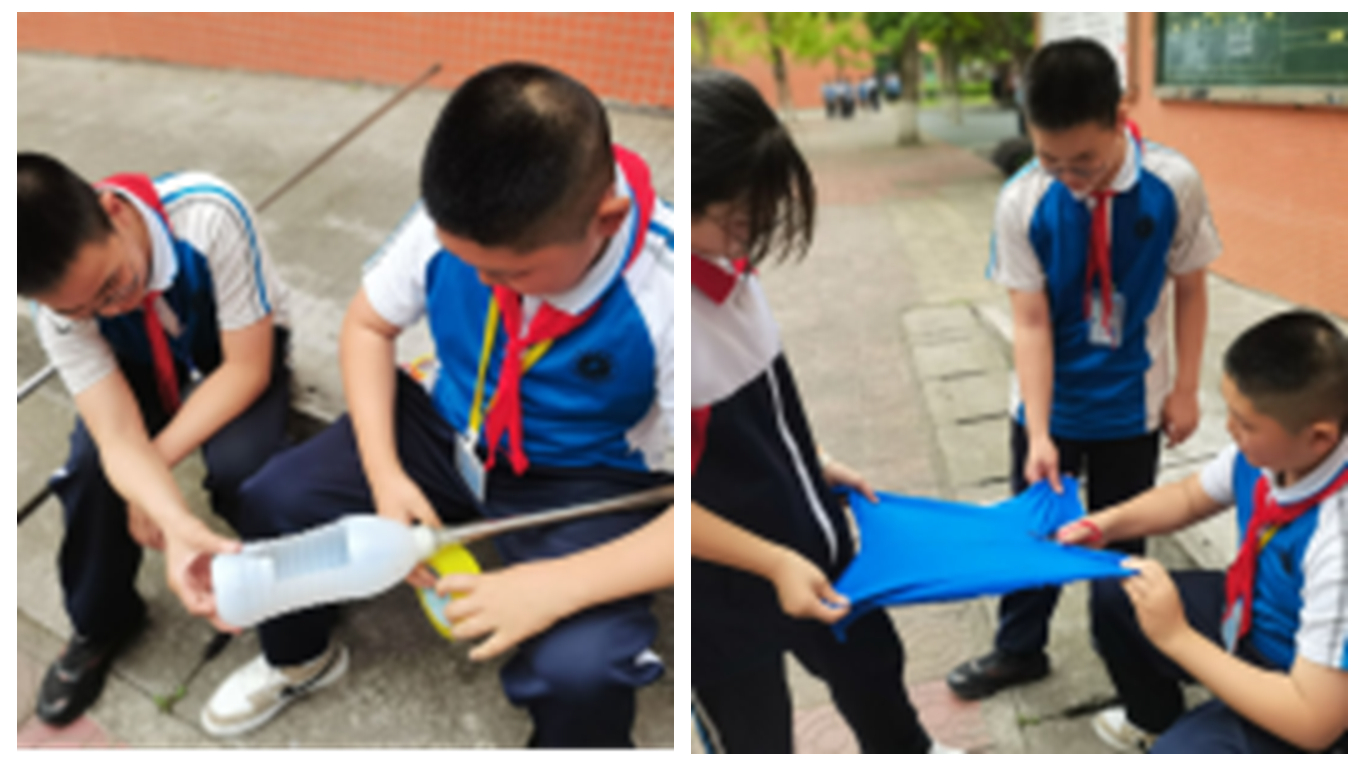 同学们便满怀期待,积极制作采摘工具。他们化身“环保小达人”,将废弃的塑料瓶改造成轻便灵活的采果神器。剪刀裁剪、铁丝缠绕、胶带固定……美术课上练就的剪纸技法化作流畅的裁剪轨迹,物理课学的力学原理在支撑结构设计中活学活用。大家围坐一团,你一言我一语,分享奇思妙想;互帮互助,攻克制作难题。在思维的碰撞与协作中,平日里潜藏的创造力被悄然唤醒,许多同学也因此发现了新的兴趣与潜能。