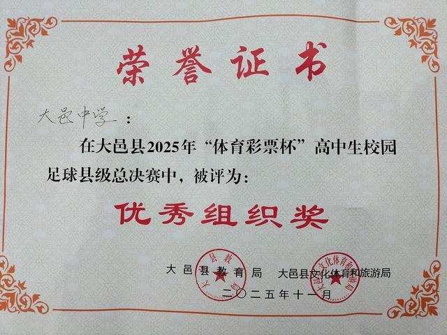 我校在大邑县2025年高中生校园足球总决赛中荣获优秀组织奖