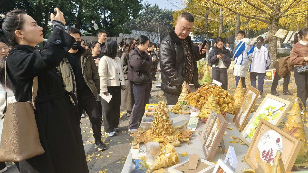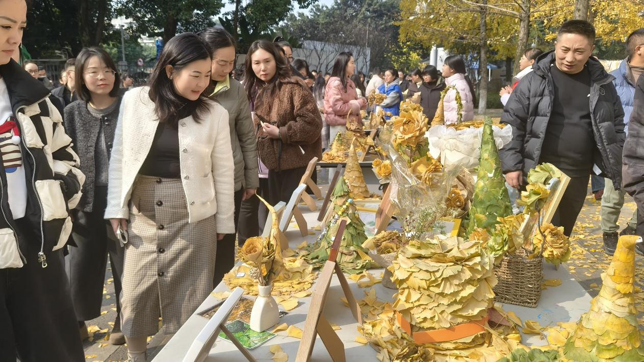 活动伊始,家长在学生的带领下,参观了“金秋银杏”主题学生作品展。精美的画作和巧妙的手工,展现了学生的丰富的想象力、创造力和学校的美育成果,赢得家长们阵阵赞赏。