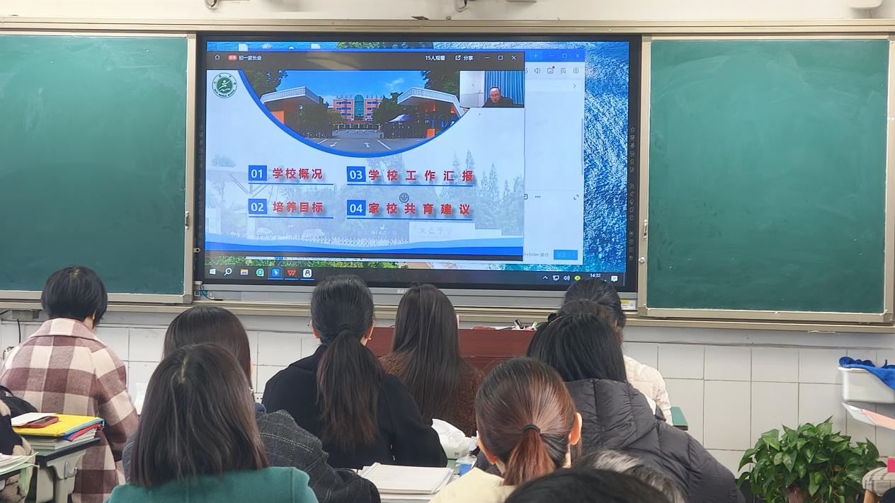 大邑中学副校长王波通过钉钉视频与家长进行交流。他从学校概况、培养目标、近期工作及家校共育四个方面展开介绍,强调了家校协同育人的重要性,呼吁家校密切沟通,形成教育合力共筑孩子美好未来。