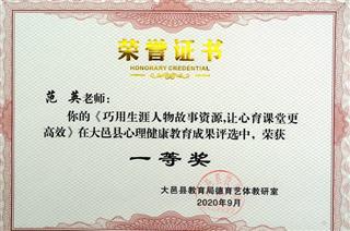 我校教师范英荣获2020年心理健康教育成果评选市二等奖、县一等奖