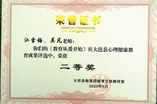 我校教师吴凡、江雪梅荣获2020年心理健康教育成果评选市三等奖、县二等奖