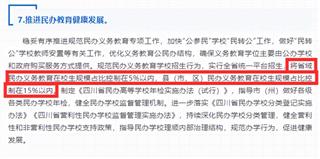 2022-03-01本文转载自“今日头条-绵学堂”2月24日,四川省教育厅发布了2022年工作要点,提出了30条主要内容,其中有一条引发广泛关注:关于民办学校发展问题,四川省表示将规范民办学校招生行为,实行全省统一平台招生,并且,省域民办义务教育在校生规模占比控制在5%以内,县(市、区)民办义务教育在校生规模占比要控制在15%以内...阅读