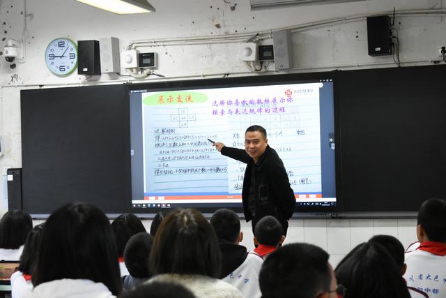 初一十班 寇钊华老师的数学课堂:引导学生通过表面现象找到规律,通过变式探究对问题深入理解。借助于多媒体交互式白板功能与平台互动功能教学,学生积极参与,思维活跃。