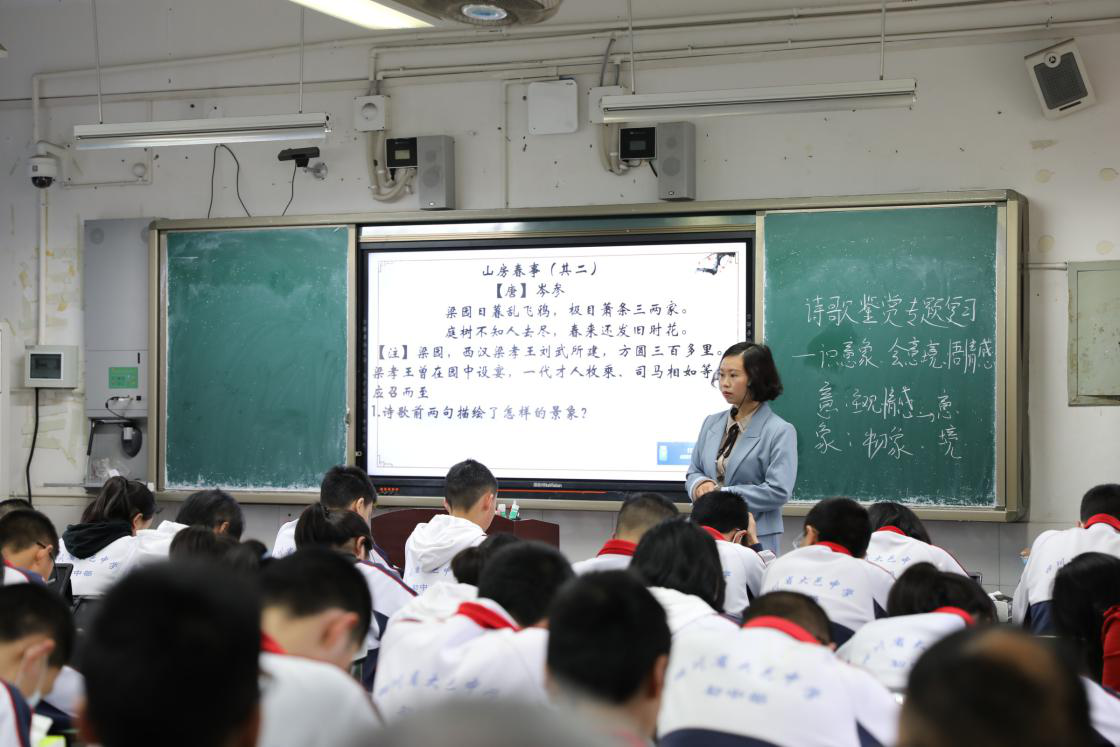 大邑中学熊丽萍老师为大家献上研讨课《诗歌鉴赏复习——识意象、会意境、悟情感》。熊老师以中考诗歌鉴赏常考题型“意象意境理解类题型”为抓手,通过复习诗歌中常见意象所代表的情感、中考意象意境类常见题型、梳理解体思路、总结答题方法。整堂课目标明确、思路清晰、讲练结合,在授课过程中循循善诱,注重对学生的精准点拨和及时引导,让学生通过充分的思考达成了知识的掌握与巩固,赢得了老师们的赞许。