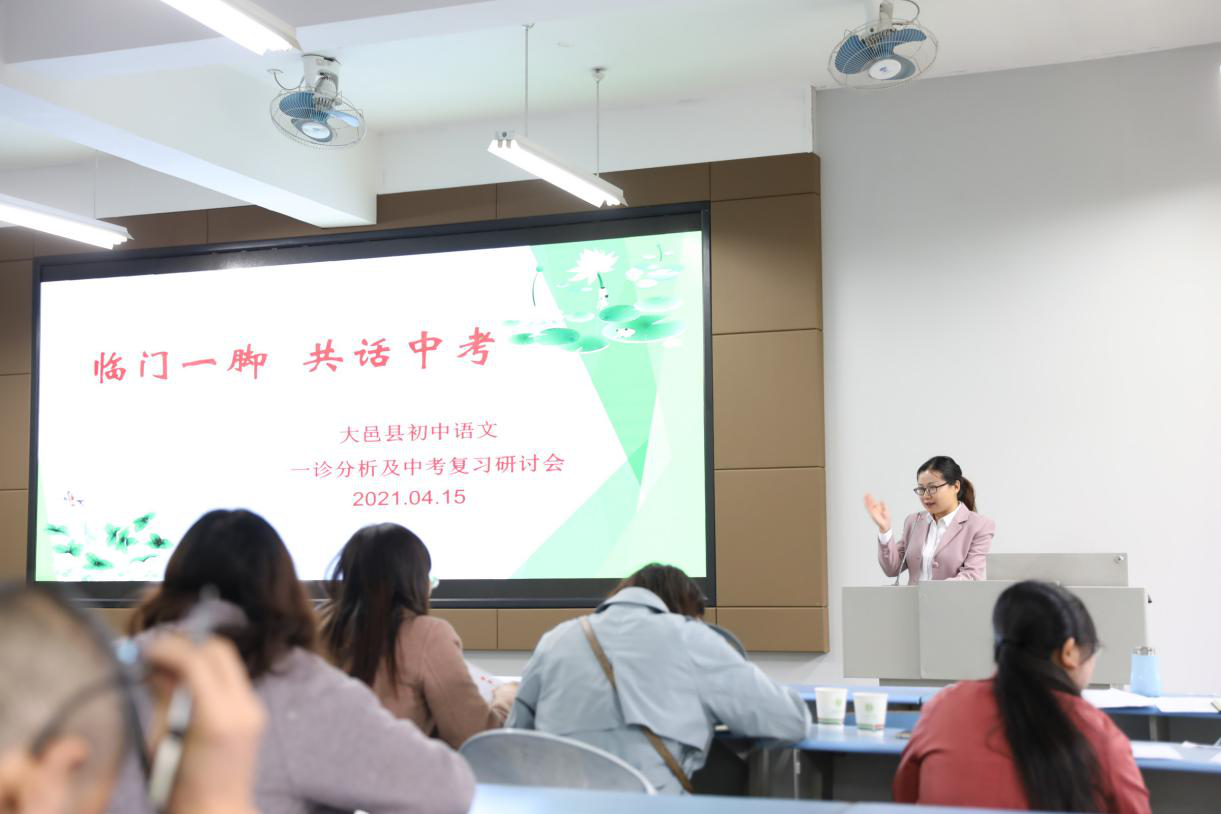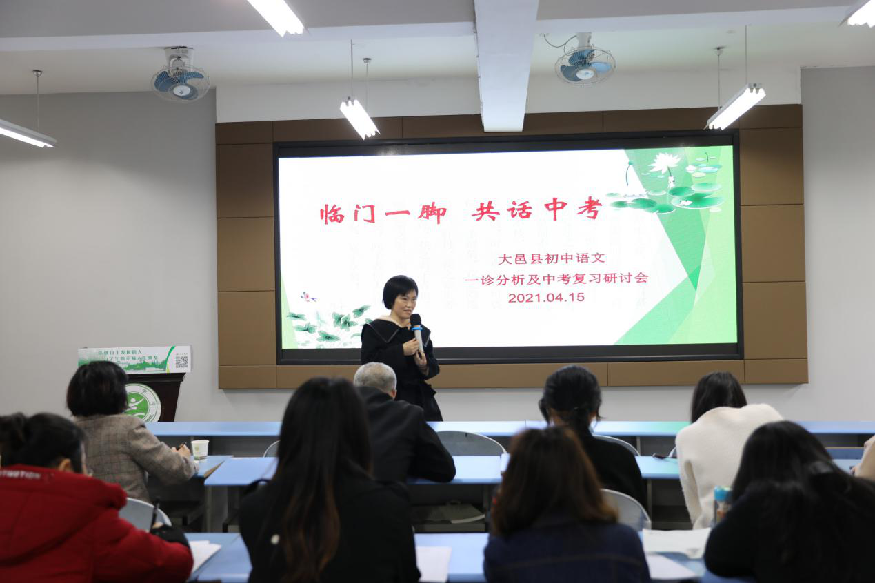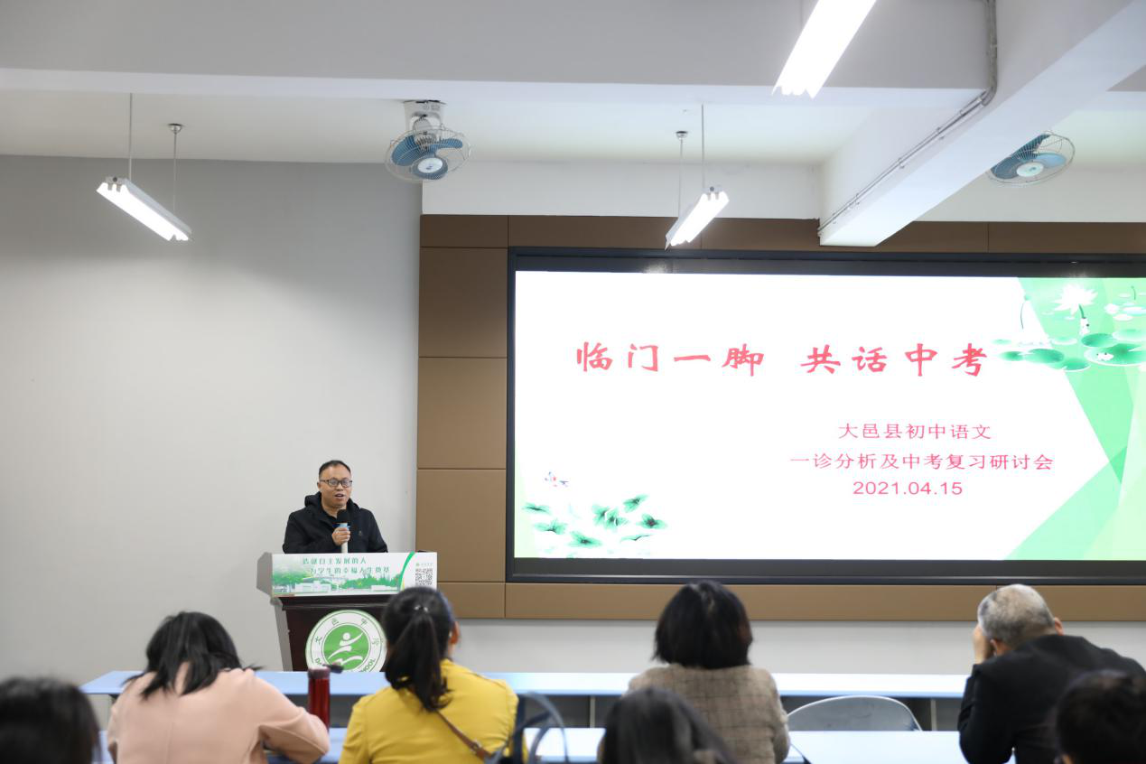 为了引领教师们深入研究中考语文新动向,交流复习策略,提高复习效率,2021年4月15日,大邑县教育局中教室副主任刘小伦组织全县九年级语文教师在我校召开了主题为“临门一脚,共话中考”的中考复习研讨会。