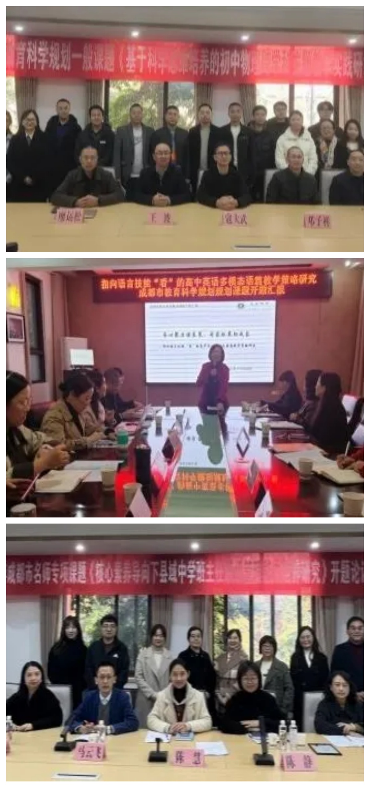 11月,学校科研工作多点开花,顺利举行三场市级课题开题论证会。论证会针对成都市一般课题《基于科学思维培养的初中物理跨学科主题教学实践研究》及两项名师专项课题《指向语言技能“看”的高中英语多模态语篇教学策略研究》《核心素养导向下县域中学班主任班级管理能力培养研究》展开,专家现场指导精准到位,为课题明确了研究方向、夯实了研究基础。