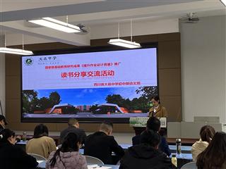 2023-05-19——大邑中学开展《提升中小学作业设计质量的实践研究》课题研究成果的读书分享交流活动为深入贯彻落实“双减”背景下“减负提质”要求,推进我校基础教育国家级优秀教学成果《提升中小学作业设计质量的实践研究》示范校的相关工作,让教师了解课题组的相关研究理论,改变教师对作业设计的认识,引导教师结合我校实际思...阅读 - 17 2023.02