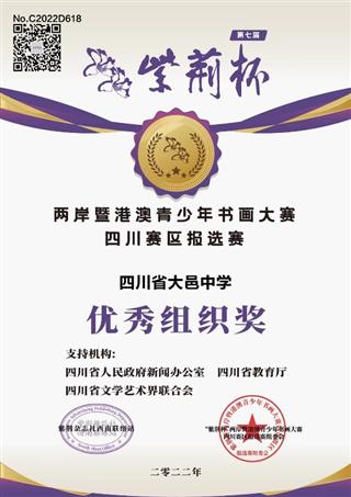 2022-05-20四川省大邑中学参加第七届“紫荆杯”两岸暨港澳青少年书画大赛载誉而归为切实推进“双减”政策,落实五育并举要求,弘扬中华优秀传统文化,四川省大邑中学开展丰富多彩的社团活动,培养大中学子感受美、欣赏美的觉知力,提升创造美、展示美的专注力,挖掘学生的内在潜能,丰富学生课余生活。近日,我校组织学生参加第七...阅读 - 16 2022.05